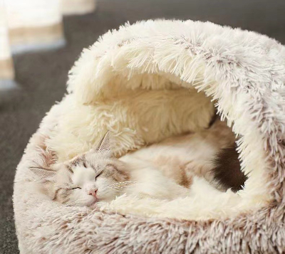 외부와 내부가 장모(퍼)재질로 되어있으면 어미고양이에게 안겨있는 느낌을 주어 심리적 안정감을 줄수 있습니다.